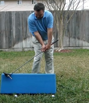Calvin squares the club up by swinging his arms inward while he lowers the handle, and turning his chest. Not much going on with his arms as far as rotation.